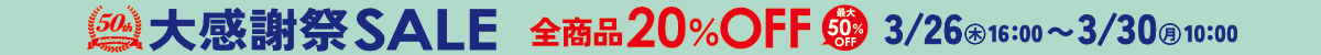 - 全品対象! 20%OFFクーポンが使える大感謝祭セール開催!!