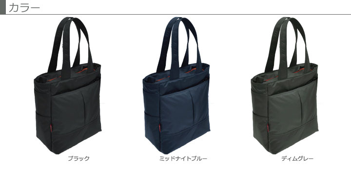 B4サイズのファイルが入るトートバッグ。メインルームには荷物が取出し易い上下2段のポケットやメッシュポケットがあり、小物を整理して収納ができます。前面にはジッパー式フロントポケット、隠しポケット、両サイドには上下2段のサイドポケット付。軽くて使いやすいカジュアルなバッグです。