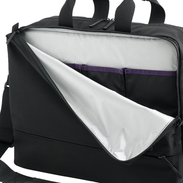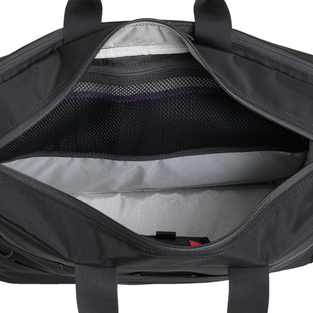 前面に2種類の生地を使用したコンビネーションデザイン。軽量の多機能2wayビジネスバッグ。多数の収納ポケットで小物を整理でき、システマチックに使いこなせます。B4サイズ対応。背面にはトローリーバッグに取り付けられるセットアップ用ベルト付き。