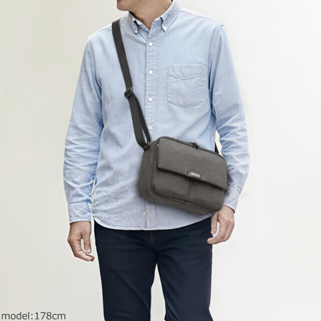 A5サイズに対応した、スマートなデザインのショルダーバッグ。隠しマグネット式の前面フラップを採用し、フロントポケットへのアクセスがしやすくなっています。財布やスマートフォン、カギ、500mlペットボトルなどが収納できるコンパクトサイズで、お出かけや街歩きなどに便利です。