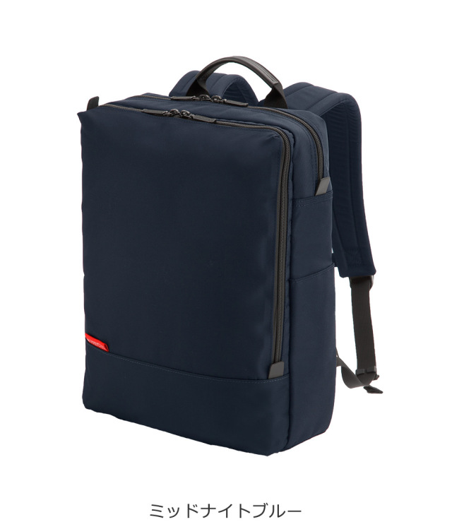 男女問わずビジネス、通学、カジュアルのどんな場面でも使える軽くて機能的なバックパック。シンプルな外観にL字に大きく開くファスナーの中には、機能的な3段ポケット。収納物が鞄の底で乱雑になることなく、すっきりと整理・収納できます。