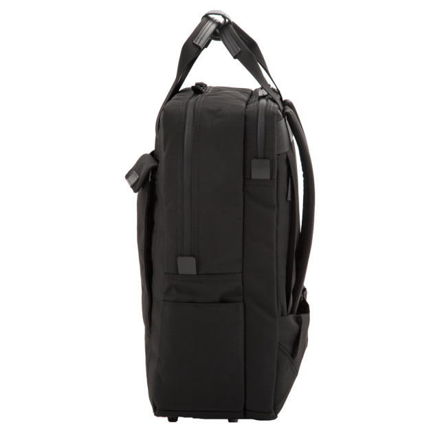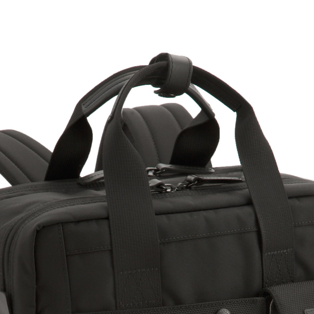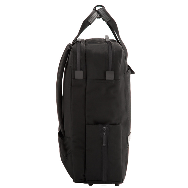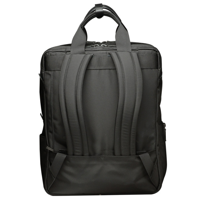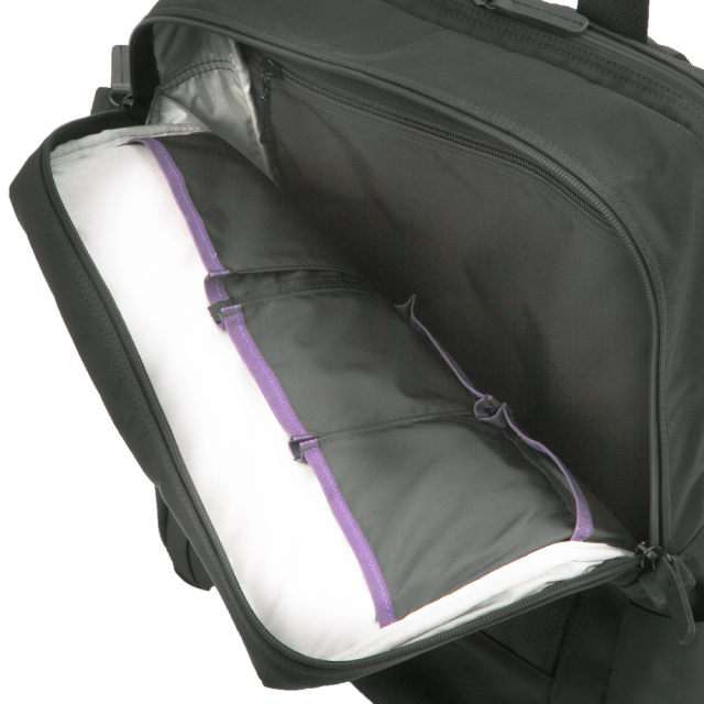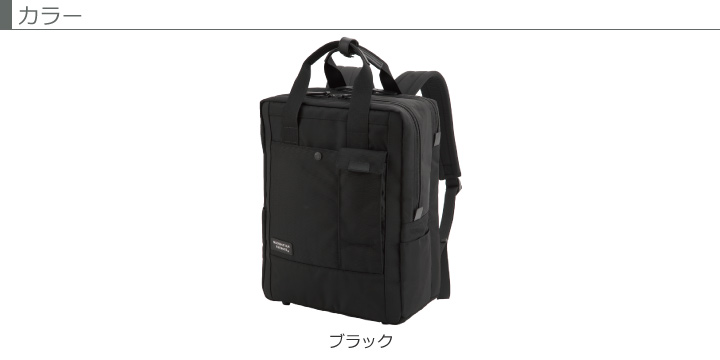 従来の「Lux」シリーズの実用的な機能がさらに進化したSTAGE2。2種類の生地を使用したコンビネーションモデル。B4サイズに対応したビジネスリュック。裏地に使用しているシルバーカラーの生地は一般的なナイロン生地と異なり繊維の断面が三つ葉型(Trilobal Fiber)で光を効率よく反射させ、鞄の中を明るく見せます。ポケット口にカラーテープを取り付け、視認性を高めています。洗練されたデザイン、かつ抜群の使いやすさです。
