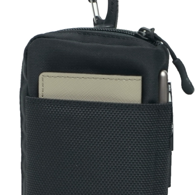 スマートフォンやデジカメなどのモバイル機器、カードケースやメモ帳など小物の収納に便利なモバイルポーチ。サイドにはペンホルダー付き。パンツのベルトに通したりバッグに取り付けたり簡単にセットアップ。使用頻度の高いガジェットをいつもの定位置でスムーズに出し入れできます。パスポートやiPhone 8 Plusサイズ(158.4 / 78.1 / 7.5mm)のスマートフォンを収納可能。