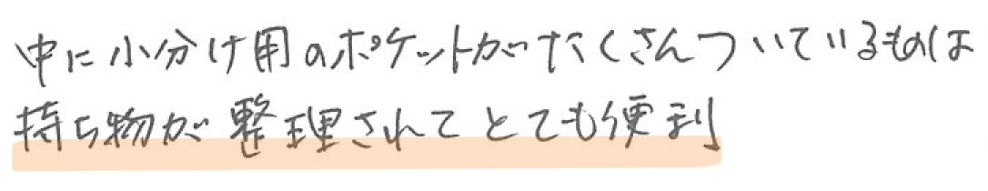 中に小分け用のポケットがたくさんついているものは持ち物が整理されて、とても便利。